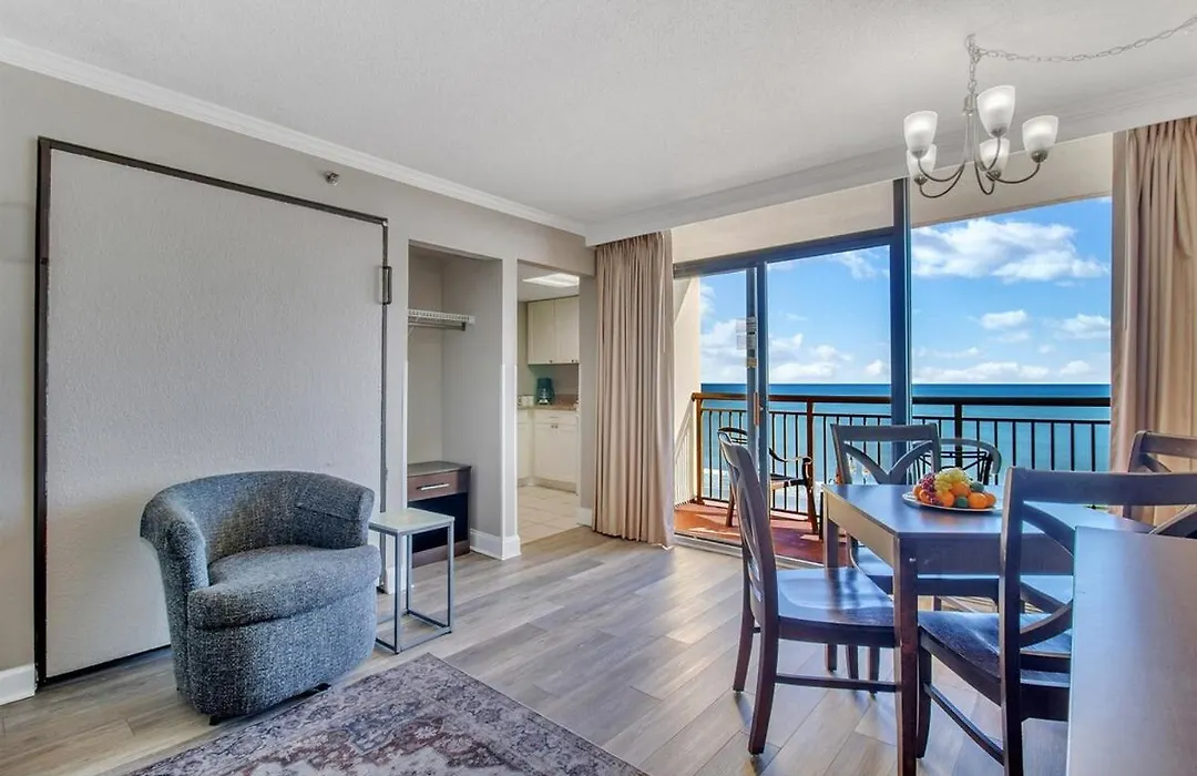 The beachfront 1-bedroom Romantic Oceanfront 1Br W Balcony Cv 911 Myrtle Beach apartment provides easy access to various city attractions, such as J C Video Games, situated merely 5 minutes' walk away. 4.4 km from Apache Pier, the spacious apartment features an indoor swimming pool and a private garden.